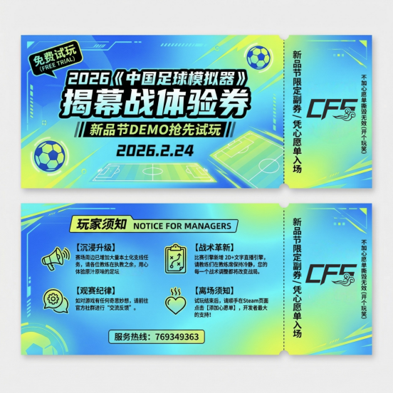 各位球友们,大家好!让大家久等了! 借着本次新品节的东风,我带着《中国足球模拟器》最新优化打磨的版本来见大家了!就在今天,Demo现已全面开放,搜索游戏名即可立即试玩!