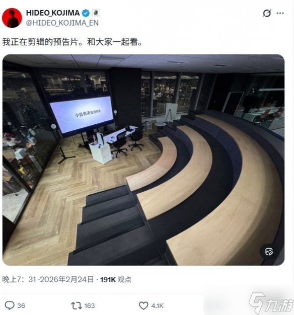 小岛秀夫近日在自己的社交媒体上发布了一张工作室观影室的照片。巨大的屏幕上展示着所有粉丝都熟悉的字样——“A Hideo Kojima Game”,其下方则是一台 PlayStation 5 开发套件。这位游戏设计师为这张照片配上了一句意味深长的评论:“我正在剪辑的预告片。大家一起观看。”
