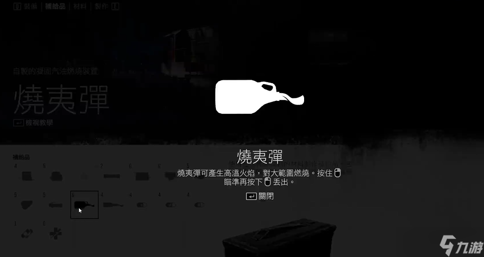 当你准备好材料后,就可以进入游戏菜单中的制作选项来合成燃烧瓶。如果已经解锁了提升制作技能,系统会自动应用减半的材料消耗规则,让你用更少的物品获得更多的产出。制作过程简单快捷,只需选择燃烧瓶图标并确认,就能立刻拥有5个燃烧瓶,这比正常制作效率高得多。燃烧瓶属于投掷物,需要通过求生环界面来快速选择和使用,这样在战斗中就能及时应对突发情况。