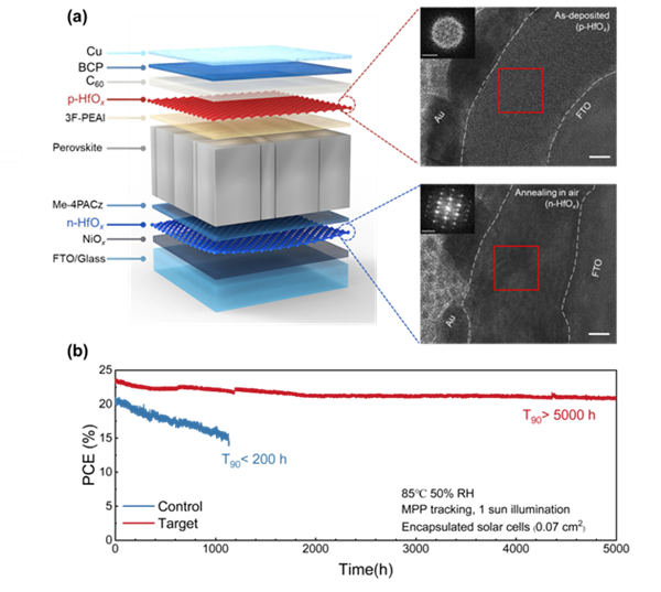 多功能氧化铪修饰的钙钛矿太阳能电池及其优异的稳定性