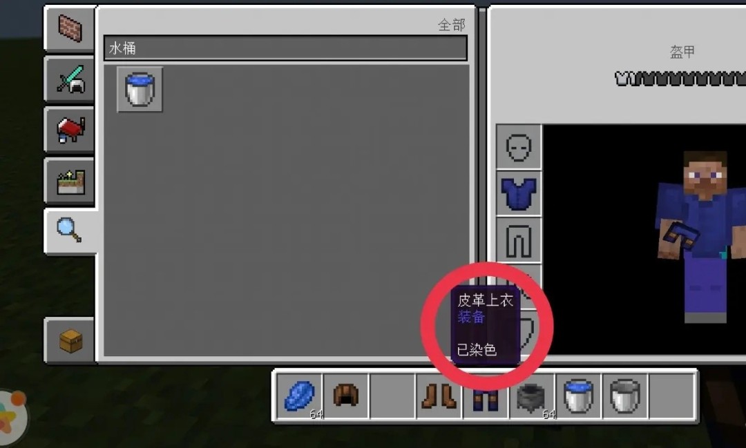 然后再手持你要染色的道具,点击炼药锅里面的水。