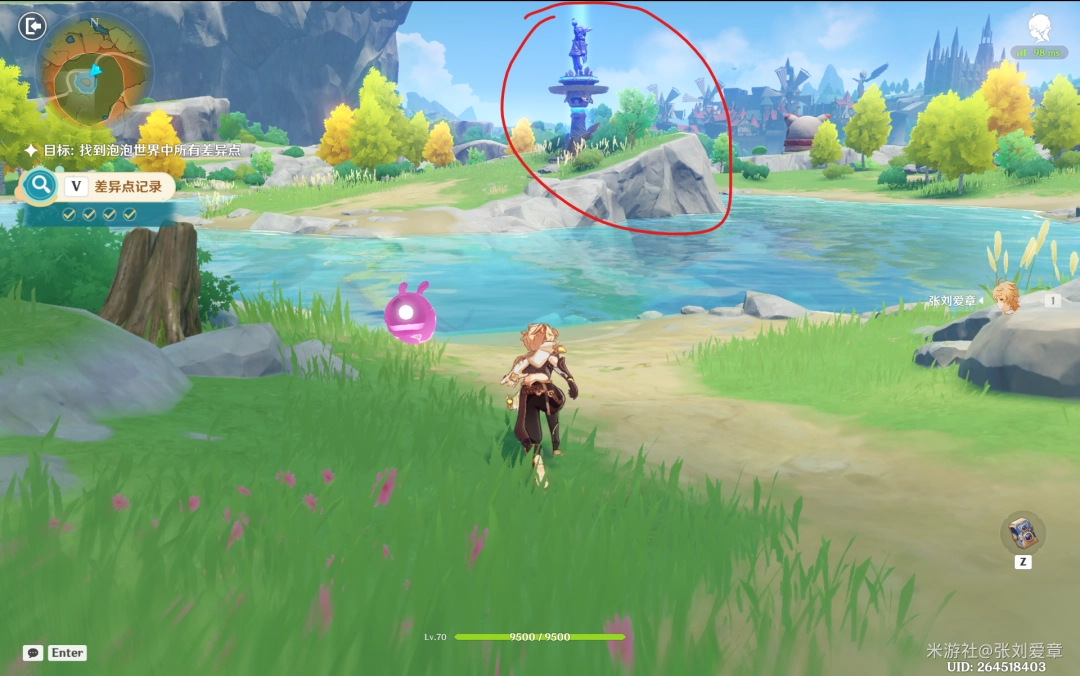 1.第一处位于星落湖中央岛,一进入就可以看到可莉的七天神像