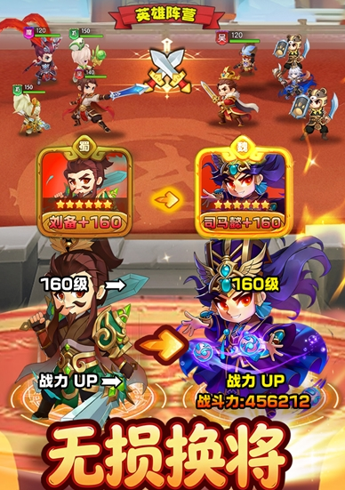 游戏严格依据《三国志》《三国演义》等史料与文学蓝本进行世界观构建,划分魏、蜀、吴、群雄、异族五大阵营体系,收录超三百位可收集武将,涵盖诸葛亮、太史慈、司马懿、刘备、关羽等标志性人物。每位角色均配备差异化主动技能、被动天赋及阵营专属羁绊机制;Q版建模结合高帧率战斗特效,实现人物形象的高度拟真化呈现。阵容搭配无固定模板,玩家可依据武将属性克制关系、技能释放节奏与羁绊叠加层级,自主规划单核爆发流、持续续航流或控制链组合,通过阵型微调达成战术压制效果,凸显策略决策价值。