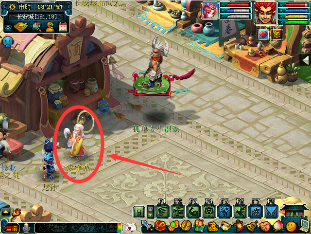 二.登录游戏后.在长安城(173,14)处找到NPC袁守诚;