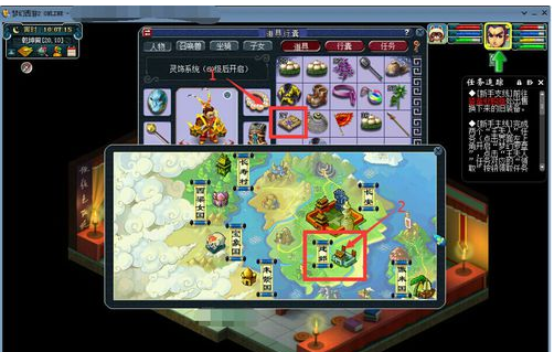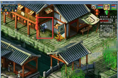 2,进入游戏后,如图所示,使用背包中的【飞行符】,飞到【建邺】;