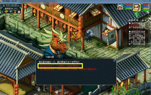 5,如图所示,和NPC【勾魂马面】对话后,在所弹出的对话框中选择第一条,然后跳转到第二个对话框时再次选择第一条。PS:在对话框中的选择只是为了让你再次确定是否删除此角色的决定;