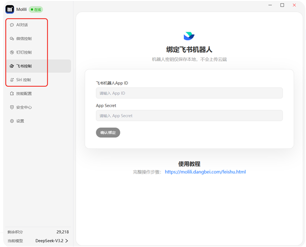 Molili近期更新的一大亮点在于其支持多平台智能控制,包括钉钉、飞书以及Siri等主流平台。这意味着用户可以通过自己熟悉的沟通工具,随时随地远程下达指令给Molili,实现真正的无缝衔接。无论你是在办公室、家中还是外出途中,只需通过手机或电脑,就能轻松控制Molili完成各项任务。