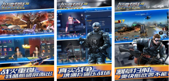 采用3d的物理引擎技术,将海陆空立体化的作战场景完美复刻,此游戏不论是从画面上或者是玩法方面都进行全面升级。大家可在游戏中感受特别硬核的fps手游,通过操控手中武器的方式精准瞄准,一键完成爆头任务。其次也融入很多创新式的玩法,包括pvp或者是佣兵等等。