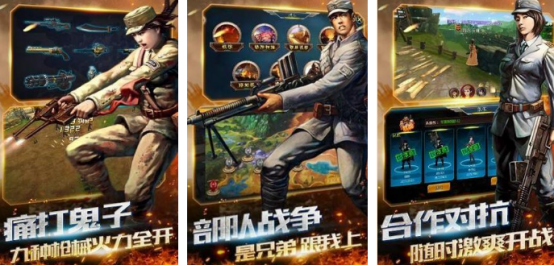 围绕抗战题材所设计,完美复刻众多优秀的英雄角色,每位英雄都有独特的技能体现,此游戏采用第3人称的射击方式,可以将超大的战场环境全部尽收眼底,完美杜绝了眩晕感,其次创作出很多丰富的pvp玩法或者是pve玩法,在游戏开局之后就可火爆开战。面对汹涌来潮的鬼子时,可从9种枪械当中正确挑选,了解这些枪械的后坐力以及子弹发射力,实时展开激爽开战。