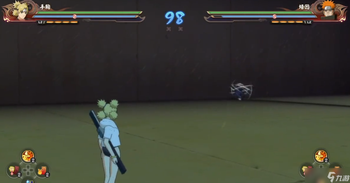 上段攻击第6A向上打出五处旋风使敌方浮空,第7A扩大风势,持续控制敌方,8A引爆旋风将敌方打到高浮空。空中攻击段数有点多,但打完以后也能连招了。段数算是一个劣势,给自己留的破绽也更多,一定需要注意出手的时机。远程攻击分两下,第一下丢出六枚手里剑,第二下打出三枚风弹,空中释放也是同样的效果,远程干扰能力会比一般忍者要强一些。投技的启动速度比较适中但是距离很近,命中敌方后会把敌方击飞,后续不能连招。