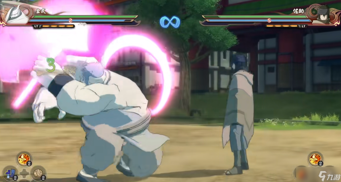 金式的第一段攻击会向前推掌,2A侧手翻以后再接一拳,3A瞬身到敌方身后连踢两脚,4A再次瞬身到敌方身后再接一脚,最后的两段攻击在命中敌人时都会使敌方跪地。这四段攻击就是金式的所有前置平A了,没有命中敌人的时,中下段的攻击只能打到第4A,而上段攻击可以直接打满。中段攻击第5A放查克拉黑棒将敌方击退,第6A进特写将敌方击飞。 需要注意的是,大体型角色只会给一个硬值。下段攻击第5A空中踢一脚,第6A进入特写将敌人击打。 面对大体型角色,同样是给一个硬值效果的。