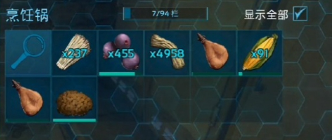 霸王龙最喜欢吃的是巨蝎蛋饲料,这个饲料的效果是最好的,驯养条涨得也快,所以如果条件允许的话,优先备好这个。制作巨蝎蛋饲料需要用到烹饪锅,材料是1个满装的水袋、2个紫色浆果、1个巨蝎蛋、1个玉米、1个优质熟肉干、3个纤维,这些东西缺一不可。优质熟肉干的做法是,先把优质生肉烤熟,然后再晒干,步骤不复杂,但是要提前弄好。巨蝎蛋是巨型蝎子产的蛋,家里养了雌蝎子的话,可以直接收集,没有的话,就得跑去找蝎子巢穴,有一点要注意,蝎子巢穴附近挺危险的,去之前做好防护。