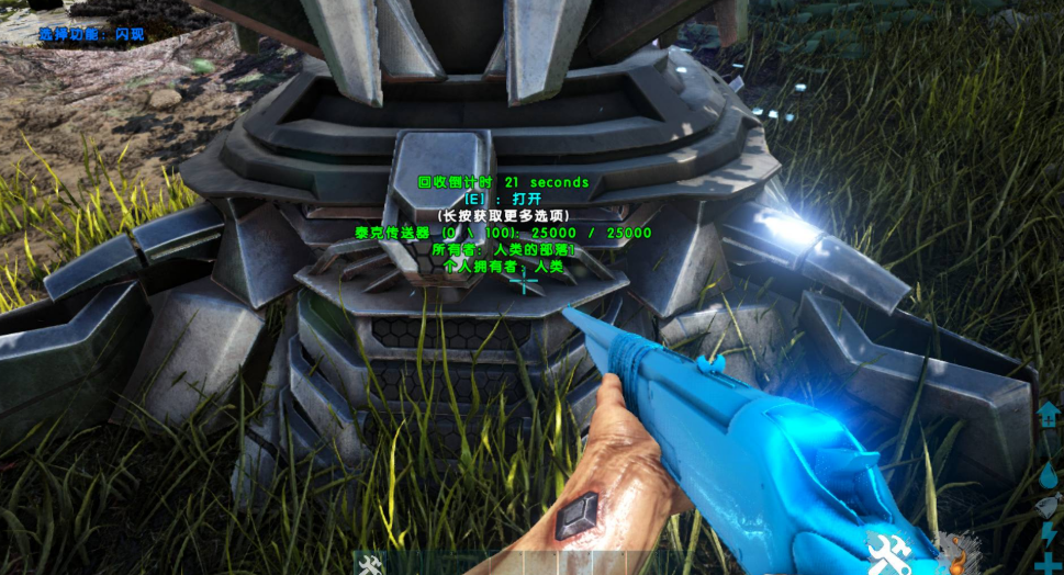 传送器那边的操作也要说一下,点开传送器之后里面有三个选项,分别是方舟数据、生物和贡品。方舟数据那个选项是用来传物品的,把东西拖进去就开始传,不同的物品等待时间不一样,一些要等一会儿。生物那个选项是专门传恐龙用的,贡品则是跨服务器传人物的时候才用到。