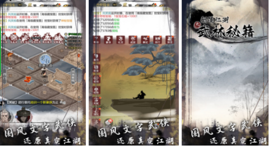 高人气文字江湖类手游,开局就有一种观看武侠小说的无限韵味,而此时你不再是小说的看客,化身成为武侠主角,刚进入江湖时,仅是一位小虾米,选择适合的门派及武功秘籍,及探索各类背景故事,完成装备自由搭配,学习技能,最终让自己的战斗力显著升级。主线任务与丰富分支任意挑选,完成任务时逐步揭开江湖秘密。