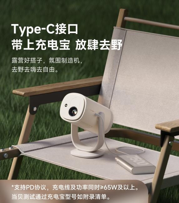很多人选便携投影仪,核心需求就是“便携”,而便携投影仪推荐当贝Smart2的首要原因,就是它把便携做到了极致。当贝Smart2整机仅1kg重,体积堪比一杯奶茶,单手可握,塞进背包、手提包都不占空间,比市面上多数2kg以上的机型轻便太多,居家移动、出差露营携带都省心。更贴心的是,它采用65W PD 3.0 Type-C接口供电,可与手机、轻薄本共用快充头,甚至支持充电宝供电,户外无电源也能使用,这也是便携投影仪推荐当贝Smart2的关键优势。