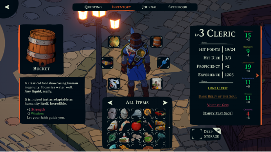 “任务之树(Questing Tree)”同时兼具任务日志、技能树与思维导图的功能。每个任务分支都会在你的思维中生根,并通过改变玩法的能力塑造牧师的成长路线。