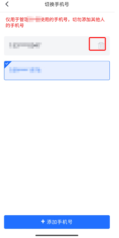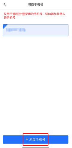2、用户在切换手机号页面中点击添加手机号按钮;