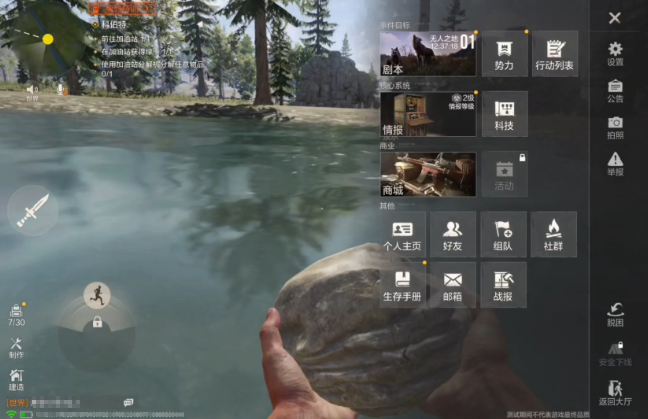 刚进入游戏的时候,所有人都没有任何装备,想要在这里面活下去,最先要做的就是搜集身边能用的基础材料。这个时候可以直接用手去击打身边的树木,对准指定的位置出手,就能让收集到的速度变快一些。做出基础的石斧之后再去处理树木,会省力很多,效率也会明显提升。除了树木之外,还能在地面上或者矿石分布的地方找到石块,这些石块的用途很多,可以用来打造石镐,方便后面挖掘更多材料。也能做成简单的防身工具,收集到足够材料之后,还能用来搭建简单的建筑,比如搭建可供休息的小木屋。