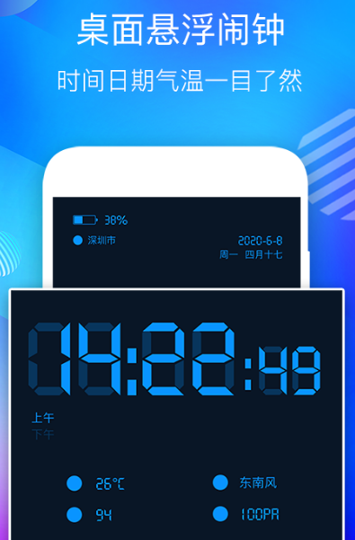 支持全局悬浮窗的多功能时间显示终端。提供高对比度数字时钟、模拟指针表盘双模式,字体大小、颜色、透明度、位置均可自由调节。集成整点语音播报、跨时区世界钟、倒计时叠加、水平仪、手电筒、直尺测量等12项高频实用工具,所有功能均无需网络权限,响应延迟低于80ms。