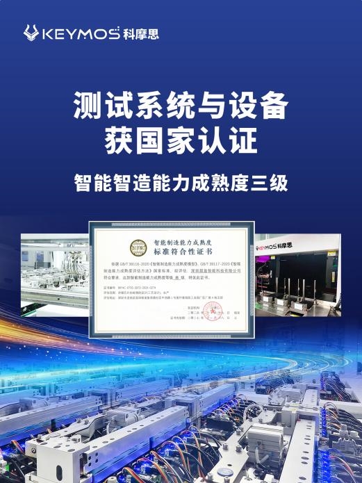 KEYMOS科摩思通过智能制造能力成熟度三级认证图