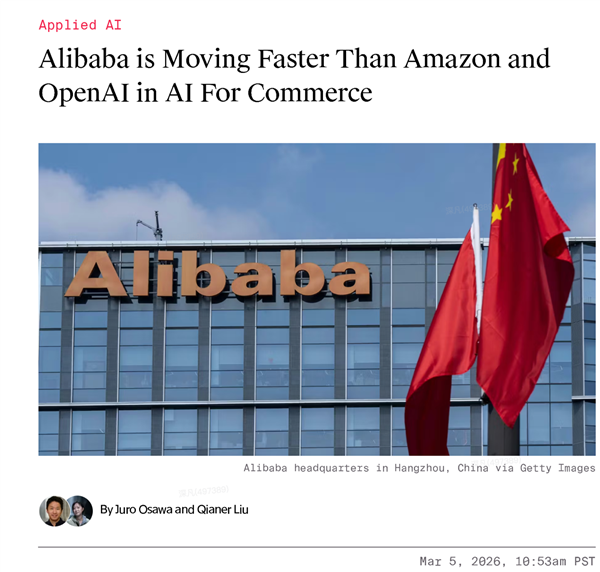 美国知名科技商业媒体The Information近日报道称,阿里巴巴在AI办事领域的进展快于亚马逊和OpenAI。文章评价称,这将又是一个中国科技企业从美国科技公司接过接力棒并加速奔跑的例子,这种情况已多次发生,中国正将AI办事推向新的水平。