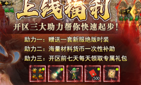 新人在上线之后,那首先就应该去获取免费的福利。游戏界面豪华大礼的入口,就可以领取更多的礼包,礼包码就是6个6。输入之后就可以获得盾牌锻造,还有称号晋升等一系列实用的道具,另外还有开天材料以及海量的经验。这些免费的资源对于微氪玩家而言就是起步的基础,所以无论如何大家都不要错过。开局还有三大助力,这就是白给的福利,例如到时候就会有绝版的时装,还有众多的材料货币,前面7天的专属礼包,一定要按时去领。