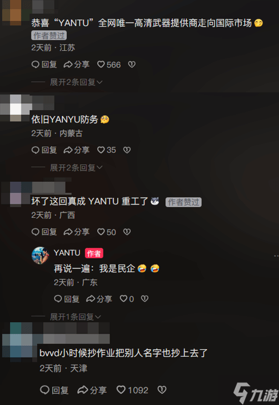 一些玩家开玩笑称“恭喜YANTU成为武器提供商”“YANTU重工”等。