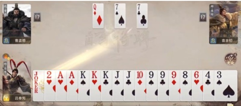当吕布的底牌中高点数牌比例增大时,威胁会进一步提升。玩家应优先组建能够制约对方出牌的组合,争取出牌主动权,并适时用单张小牌来推动牌局进程。需要记住,大王和2点牌不属于J、Q、K范畴,可以作为关键的安全牌使用。即使手握高价值炸弹,在局势未明时也不宜轻易打出,以免因操作失误导致局面失控,让吕布趁机回收大量好牌。