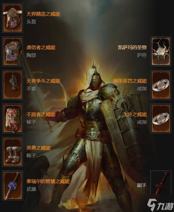 除了[泰瑞尔的管辖之威能][飞升之威能][天界争斗之威能]外,剩下威能都可以换成你觉得可用的暗金装备。