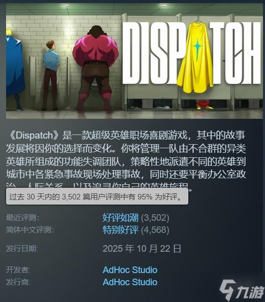令人欣慰的是,《超英派遣中心》自上线以来收获了大量好评。在Steam平台上,最近评测为“好评如潮”,好评率高达95%,成为叙事类游戏重返舞台的“实力证明”。
