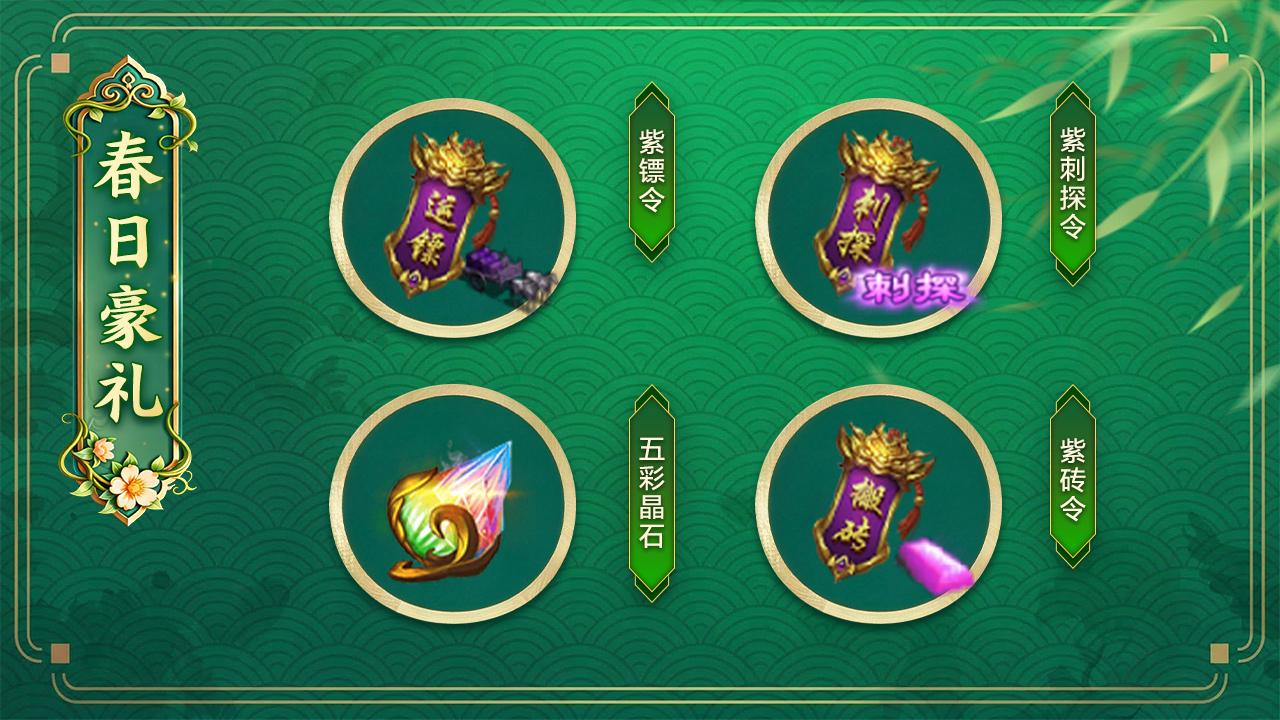 春日渐暖,豪礼相伴!每日登录即可获取五彩晶石,紫镖令,紫砖令,紫刺探令等珍稀好礼!