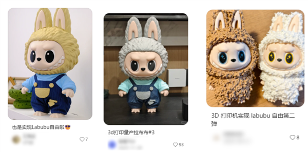 简单来说,最近社交媒体上出现了一大批跟风 3D 打印 Labubu 的野生玩家。各种社媒上,全是什么 “ 从此实现 Labubu 自由了 ”、“ 几块钱就能量产了 ”的帖子