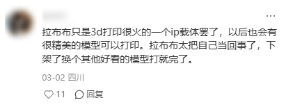 但是Labubu 和罗小黑核心就是靠实体潮玩赚钱。3D 打印模型对他们的生意,可以说是精准打击,一击即中。