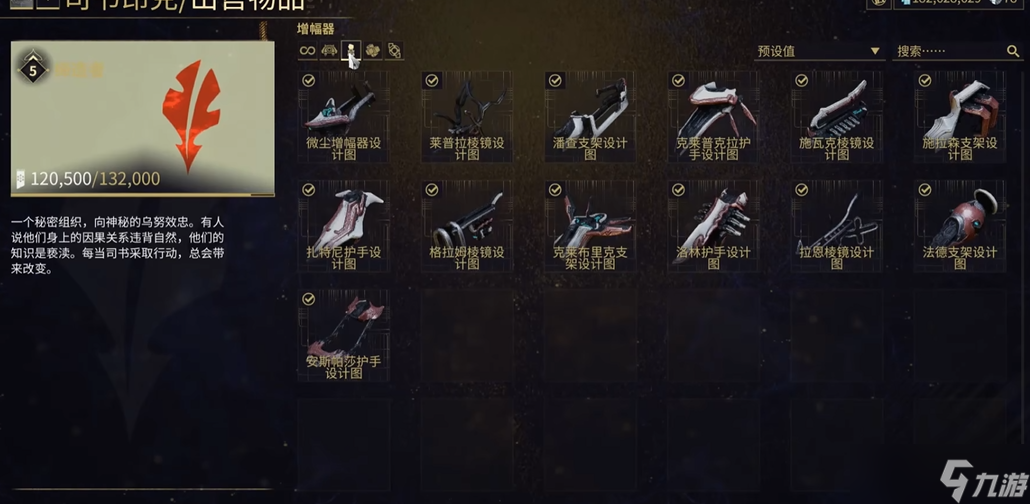 要获取组成777增幅器的具体部件,玩家必须前往地球的夜灵平野,并与该区域的两个关键声望集团建立联系以解锁相应兑换。增幅器的所有部件蓝图都分散在两个集团供应商处:司书昂克(Ostron)和小鸭子(夜羽,TheQuills)。根据部件等级划分,第七世代(T的棱镜、支架和曲柄蓝图,通常需要玩家将对应集团的声望等级提升到最高级后,使用特定资源(如夜羽声望所需的灵煞核心)进行兑换。获取核心的过程本身就充满挑战,包括高效猎杀夜灵或完成高等级赏金任务。