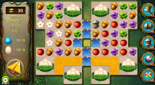 以奇幻精灵世界为背景,本作将传统三消逻辑与俄罗斯方块式堆叠机制有机融合。全关卡均设定差异化通关条件,要求玩家在限定步数或目标分数内完成指定任务。操作方式直观:拖动相邻同色精灵形成三点及以上连线即可触发消除,每次成功匹配均伴随动态光效反馈,增强操作沉浸感与正向激励。