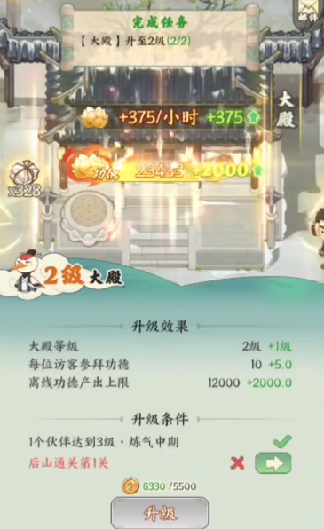在灵币储备充足的前提下,应优先提升已有建筑等级,包括灵田、施药处、商铺、大殿等关键设施,从而形成资源产出—转化—增值的正向循环,加速整体发展进程。