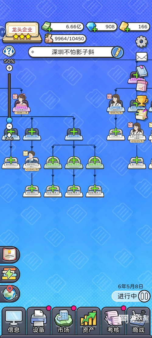 4、后期直接董事会招人,50砖欢迎然后踢掉,每个月5次250点实力提升,砖石留着刷高属性人才,打副本给的奖励基本够用,不太缺砖石