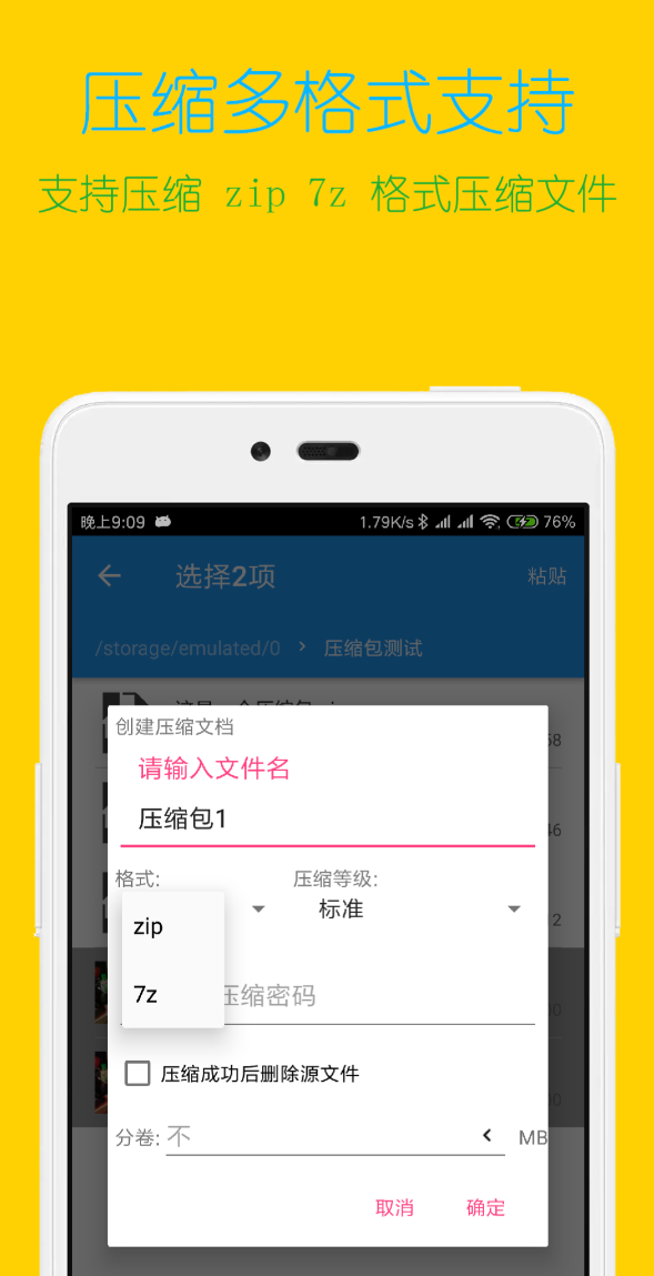 集解压引擎与文件中枢于一体,支持ZIP、7Z、RAR、TAR、APK、DEB、ISO等逾四十种归档格式,自动识别并合并分卷压缩文件(如.part1.rar、.001等后缀)。加密压缩包支持密码输入与暴力破解提示,压缩环节可调节压缩级别(存储/最快/标准/最大),并启用AES-128加密打包。文件视图支持列表/网格双模式切换,配备本地回收站机制;压缩包内文档、图像、音视频均支持免解压直读,MP4、MP3、WAV等格式可即时播放;解压结果支持一键分享至微信、QQ、邮件等常用渠道。