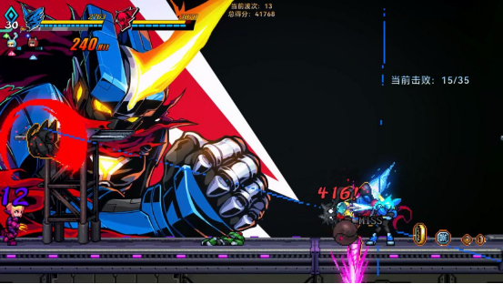 在《超合金冲击》中,玩家将操作两位风格迥异的宇宙猎人——机器人“牧”(No.2)与强化人“凯里”,探索传说中的宝藏星球AE-38。旅途中,玩家不仅需要面对各类宇宙强敌,还需与竞争者展开激烈较量,通过强化角色,组合属于自己的技能搭配和芯片组合,在一个最纯正的2D格斗动作游戏世界中,迎接一场场敌人蜂拥而至的震撼战斗。