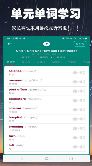 支持精细化句式拆解点读,长难句可逐段解析,降低理解门槛;发音采用教育出版机构官方录音,音质清晰、语调自然,区别于通用TTS合成语音。配套课文动画源自原版教学资源,内容与语言节奏高度统一,观看即完成初步输入。跟读练习支持词级与句级双维度比对,评分后自动标注偏差音素或语调节点,提供可操作的纠音指引。