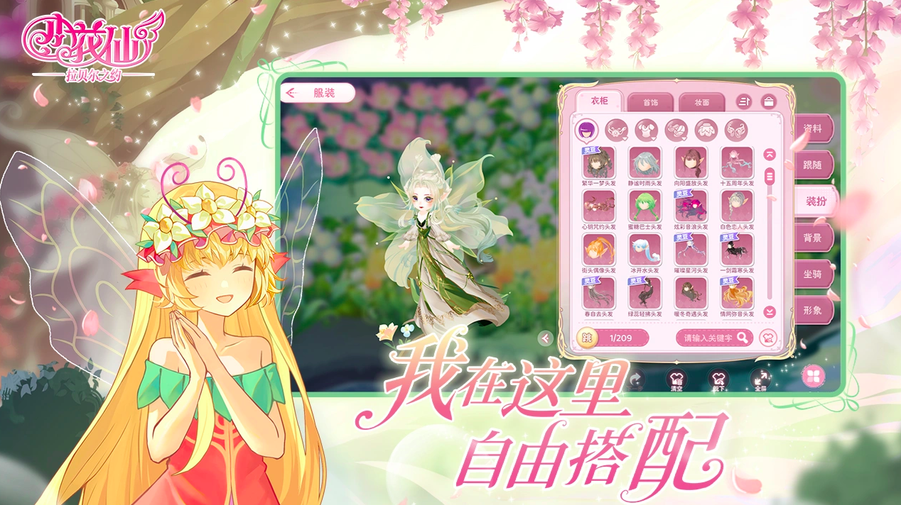 个性化形象系统全面升级——超百套服饰自由搭配,涵盖田园清新、宫廷华美、暗黑幻想等多种风格;精灵翅膀、面部妆容、发饰细节均可自主定制,打造独一无二的小花仙形象。