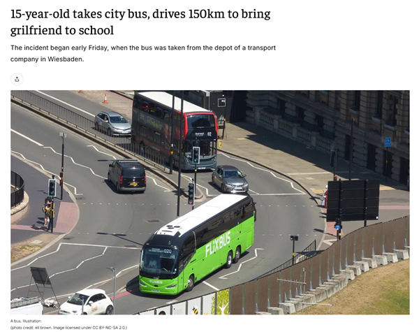 事件迅速在德国社交媒体上引发热议,有人称其为“最疯狂的爱的表白”,也有人担忧未成年人获取交通工具的安全隐患,以及公交公司的安保漏洞。
