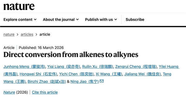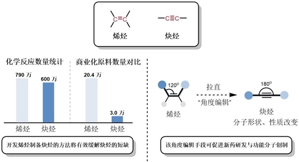 据介绍,烯烃与炔烃,是现代合成化学的重要基石,自19世纪化学家马尔科夫尼科夫首次尝试由烯烃合成炔烃以来,160多年间,化学界持续攻关,却始终未能找到一种温和、实用的替代方案。