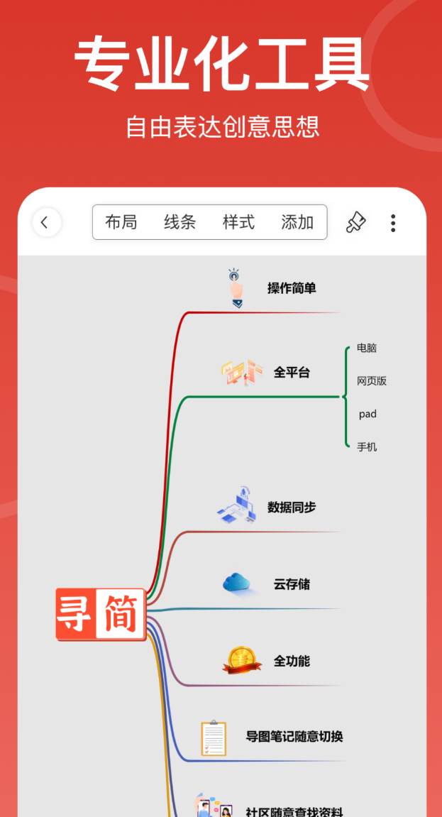 强调全场景一致性体验:手机、平板、PC客户端及Web网页端共享同一账户体系,编辑状态实时同步。支持一键批量切换整体视觉风格,大幅缩短美化耗时。创新引入“关联导图”与“分页视图”功能,适用于构建知识图谱、课程体系或复杂项目路线图。内容模块支持嵌入视频片段、语音备忘及文档附件,显著提升单张导图的信息承载密度。内置多人协同编辑权限管理,适用于小组研讨、远程教学或跨部门协作。