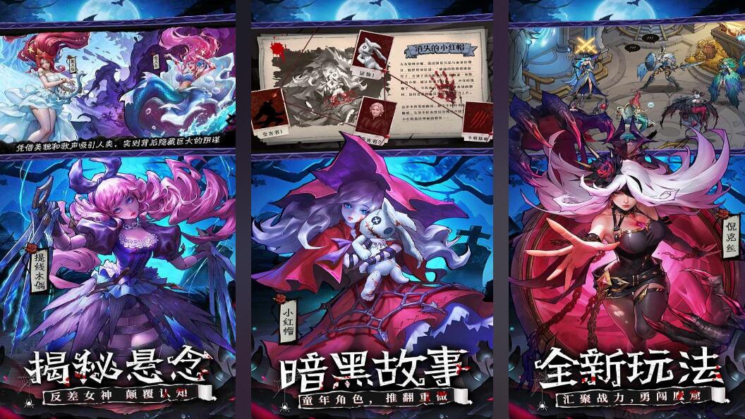 融合北欧神话架构与暗黑童话美学的策略卡牌作品。游戏采用半自动回合制战斗机制,支持技能序列预设与离线挂机收益;每赛季周期为两个月,定期上线限定女武神角色与主题玩法。所有角色均以高对比度暗黑风格塑造,场景氛围诡谲深邃,叙事节奏张力十足。
