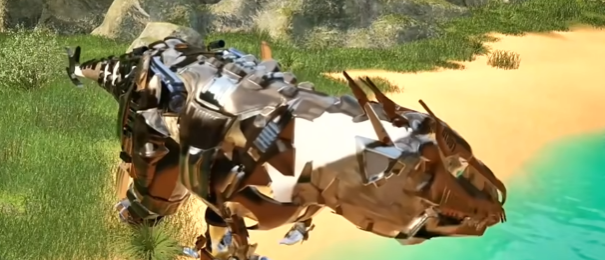 游戏的地图是按照白垩纪晚期那个年代的生态来设计的。里面有火山地带、沼泽湿地、针叶林,还有古老的河谷地形,地貌种类挺丰富的。画面上用了比较精细的建模,光影效果也做了处理,走在里面有种真的置身于那个年代的感觉。游戏里每种恐龙的样子和行为习惯,也是参考了真实资料来还原的,不是随便捏出来的造型,看起来比较有说服力。