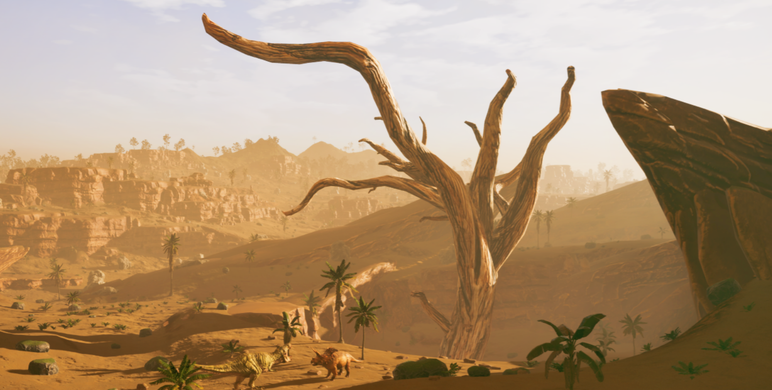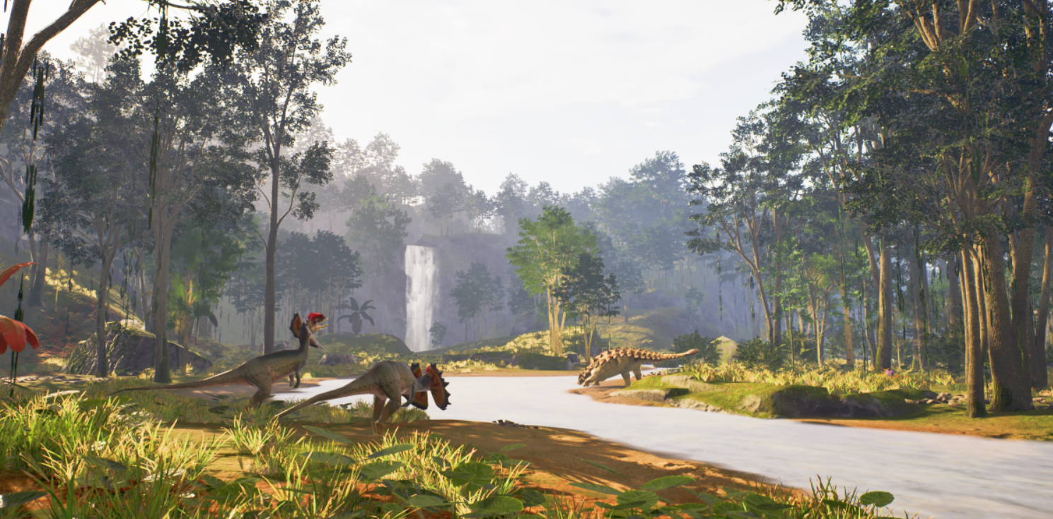 进入游戏之后,玩家可以选择扮演人类探险家,也可以直接变成一只恐龙去体验。霸王龙、迅猛龙这些都能选,每种恐龙的移动方式和攻击习惯都不一样,玩起来感觉差别挺大的。以恐龙视角在地图上跑动,看到其他生物的反应,这种体验在别的游戏里很少见。