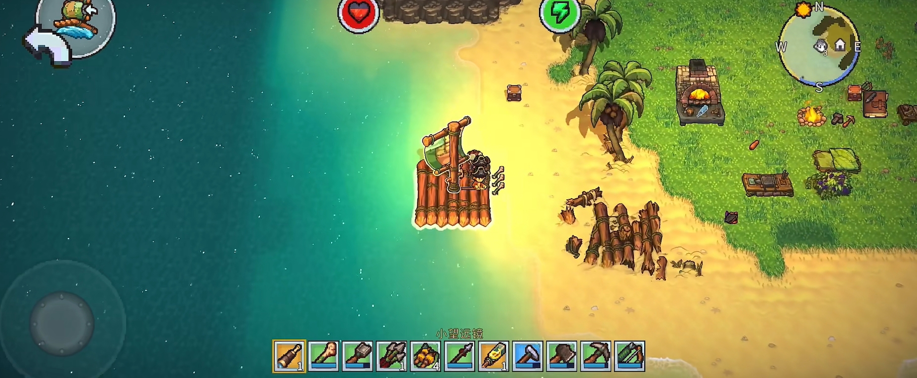 当然了,初始岛屿的面积毕竟有限,玩家们要想前往更远的地方探索,还可在制作出船后,乘船跨越水域前往其他的岛屿陆地冒险。但要注意未知的岛屿陆地可不像初始岛屿那样风平浪静,无论是奇特的生物还是各类有特殊效果的地块,都会对玩家造成威胁,需要小心应对。此外,要是玩家们找到了更合适自己生存的岛屿,也可直接将家搬过来,甚至能在多个岛屿上都建造家园,让自己不管去到哪个岛屿,都有可为自己提供安全保障的地方。