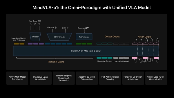 MindVLA?o1实现了空间理解、推理决策、驾驶行为的统一建模,具备多模态思考能力,可在隐空间模拟场景变化。