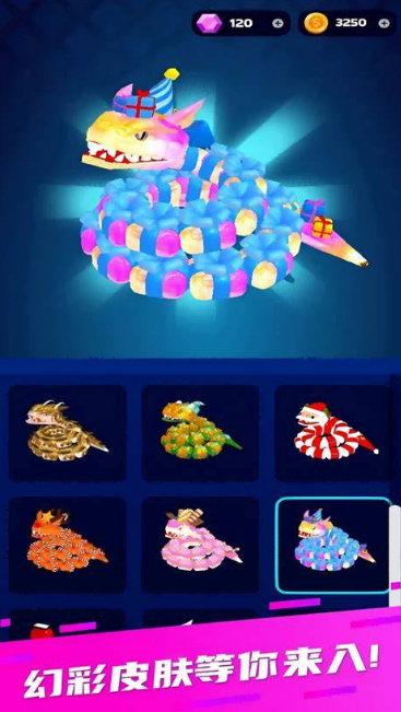 创新玩法不单调,蛇车结合有新意,闯关挑战更有趣,《蛇车冒险》玩家操控蛇形小车在专属赛道上移动,吃掉赛道上的能量道具来延长车身,同时要灵活避开赛道上的障碍物和其他玩家的蛇车,避免碰撞淘汰,核心亮点是加入了丰富的赛道闯关模式,每一关的地形都不一样,有弯道、陡坡等不同障碍,还能解锁不同款式的蛇车皮肤,移动的时候有专属的动态效果,玩法比传统吃蛇更有新鲜感。
